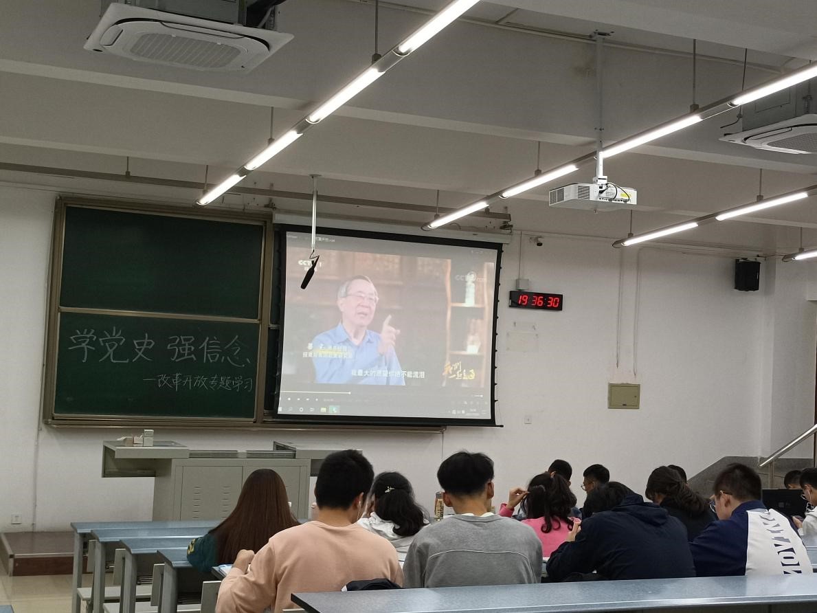 2021年10月20日19:30,太阳成集团tyc122cc2021级电子信息科学与技术专业1-4班全体员工于X1415教室进行改革开放专题党史学习。本次活动由电讯2班团支书陈崇桂主持。