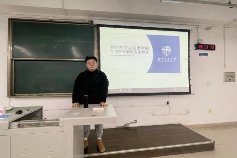 为进一步加强员工宿舍防火用电安全工作,消除安全隐患,有效预防员工宿舍火灾事故的发生,保障学校消防安全。3月2日19时,太阳成集团tyc122cc“员工宿舍消防安全教育”学习会分别在X2217和X2218教室如期举行,2021级电讯一班团支书赵书娴同学和2021级应物一班团支书杜彦荣同学主持此次讲座。