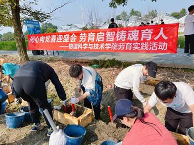 习近平总书记曾深刻指出:“人世间的一切成就、一切幸福都源于劳动和创造”。为更好感悟劳动精神,师生们在战旗村村民的带领下,开展了模拟都江堰水利工程的劳动实践活动。从炎炎烈日到夕阳西下,从杂草丛生到泾渭分明,整整两天的劳动中,流下的汗水见证师生们的辛苦,泥泞的手套体现师生们的勤劳。分工有序,协调有度的表现之下,是师生们齐心协力,吃苦耐劳的不懈付出。在本次实践活动中,师生们用自己的双手和简单的劳动工具,有的同学手划伤了,有的老师眼睛被汗水浸得睁不开,但师生们不喊苦不喊累,将一片原本荒芜的土地逐渐平整得有模有样,劳动的付出渐渐有了回报。