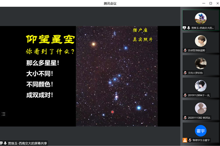 此次讲座,为同学们提供了一个了解宇宙奥秘的平台,激发了同学们学习天体物理的浓厚兴趣,同学们也对脉冲星的形成、性质、应用等方面有了初步的认识,提高了学术修养,受益匪浅,期待在未来可以开展更多类似的活动。