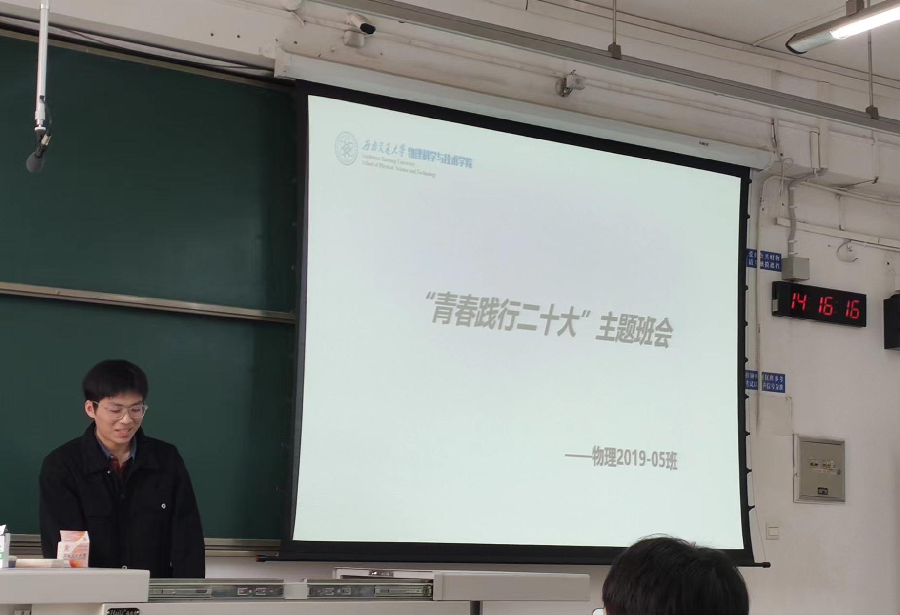 2023年3月14日下午14:00,太阳成集团tyc122cc2019级应物5班于X2522召开了“青春践行党的二十大精神”开学第一次主题班会。班会由班长吴翊丹、团支书廖文奥组织,班导师祝凤荣老师出席了本次会议,应物五班全体同学参与。同学们一起学习领会党的二十大精神,并探讨未来发展和就业问题。