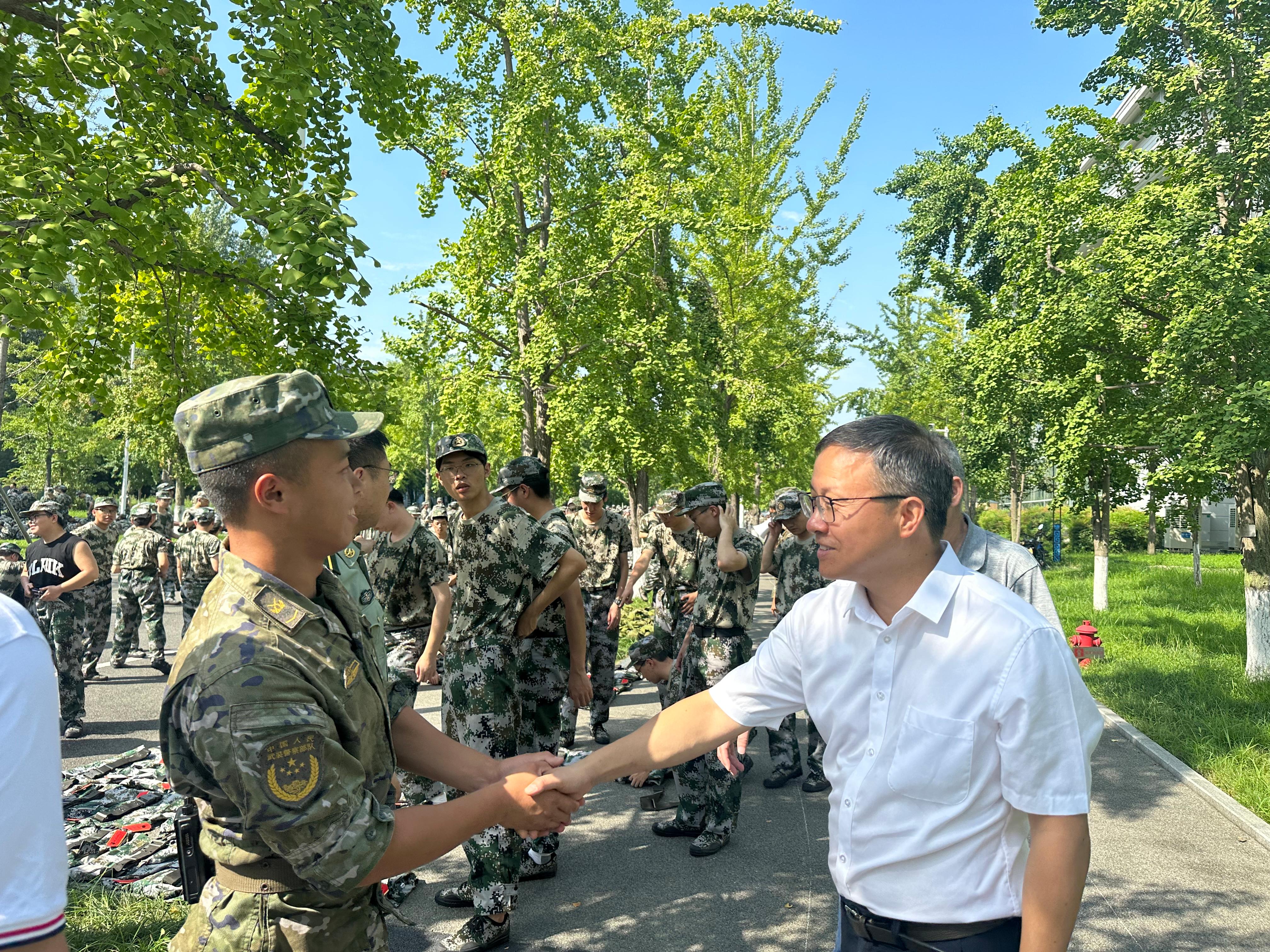 刘玉书记观摩了2021级本科生军训实况并向军训教官详细了解了军训训练情况,他对教官们的辛苦付出表示感谢,并向正在军训的2021级本科生给予了充分肯定。他表示,军事训练能够增强年轻人的国防意识与爱国情怀,希望同学们能克服困难,在军训中扎实学好知识,完美完成军训任务。