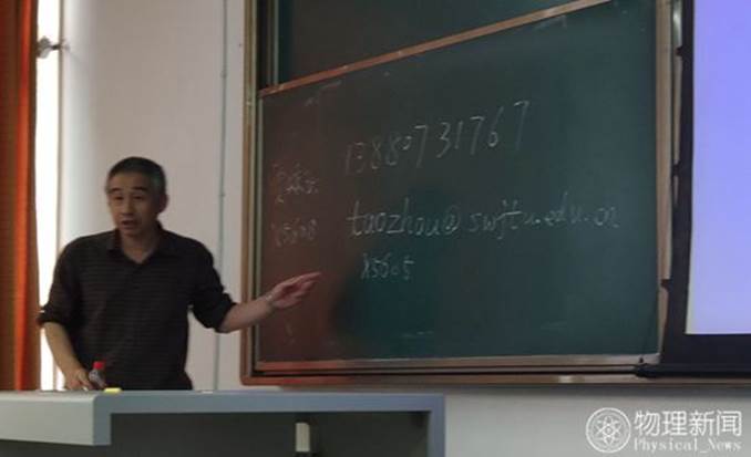 周涛老师A;到了大学学习方法已经和高中有了很大的区别,再也不是灌输式的教育,而要学会自主学习,独立性的思考,多学会问老师,这样才能很好的学好大学物理。(图为周涛老师分享经验及联系方式)