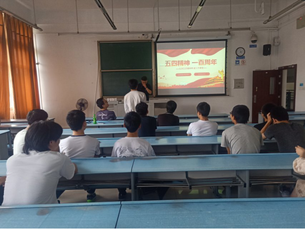 首先,班级团支部简单讲解了五四运动的背景和五四精神的含义:五四运动是一场彻底的反帝反封建的爱国运动,五四运动直接影响了中国共产党的诞生和发展、五四精神的核心内容是“爱国、进步、民主、科学”等。然后,团支部共同学习五四教育视频,并请同学发表了对五四运动以及教育视频的感想。紧接着,班长热情激昂地朗诵了一段以“五四爱国精神”为主题的文章,激起了在场每一个人的爱国情怀。
