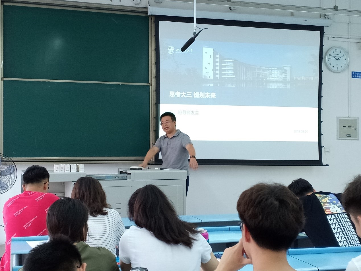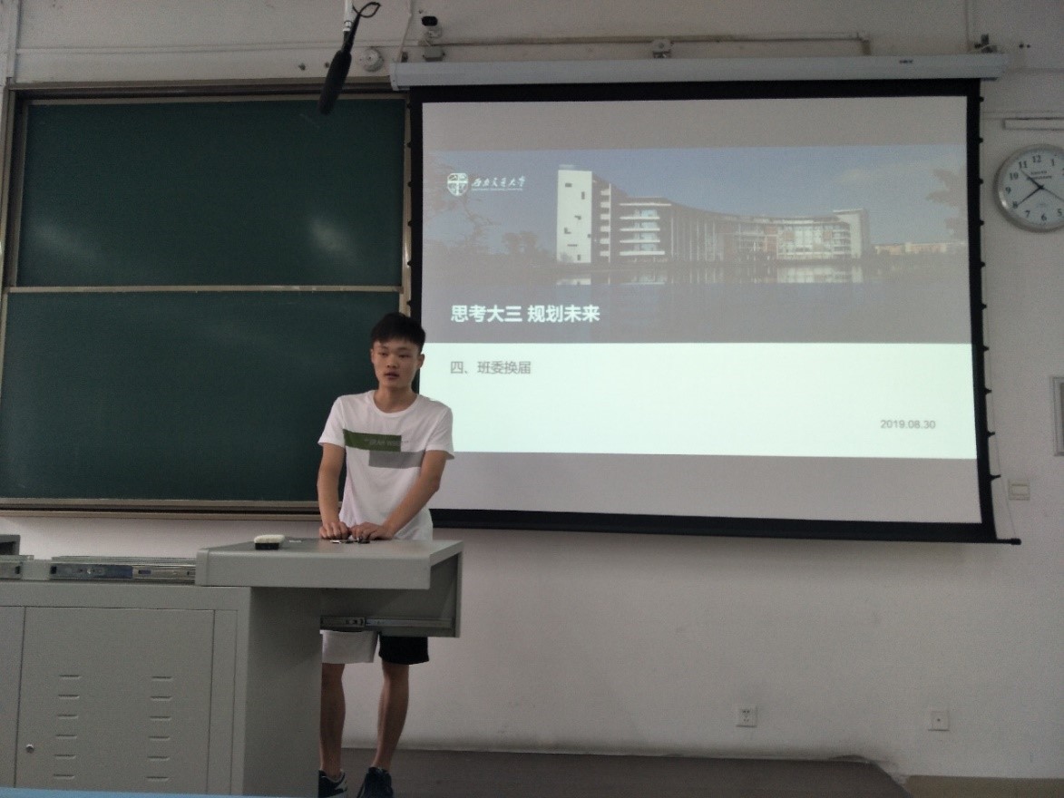 2019年8月30日上午,太阳成集团tyc122cc2017级电磁2班新学期第一次主题班会在犀浦校区X2528召开。本次班会包括民主评议、班导师发言、员工代表讲话、班委竞选、辅导员讲话、唱响班歌六个环节。