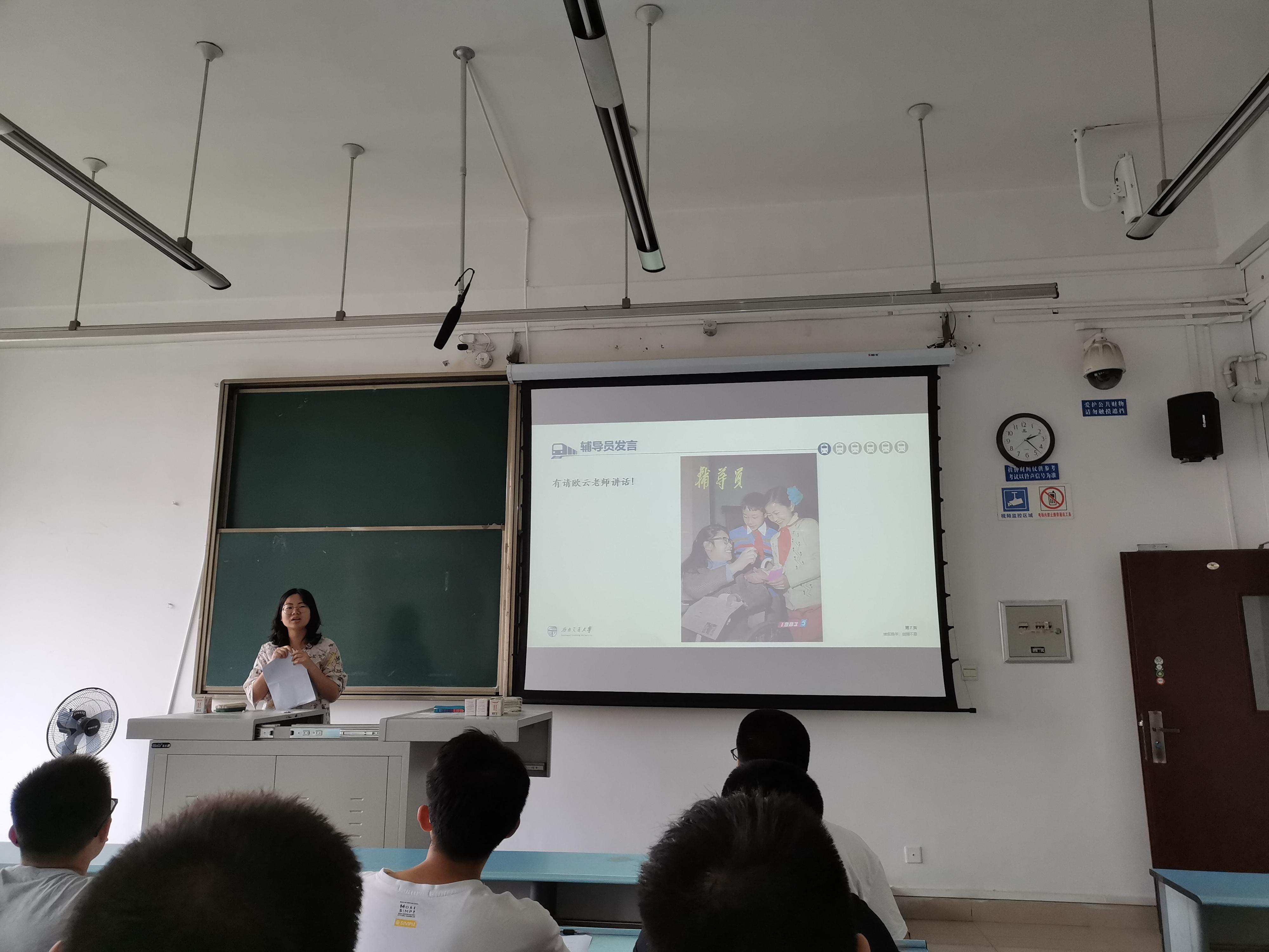 接下来,辅导员欧云老师在自我介绍后向同学们在大学学习和生活方面提出了几点要求,包括时间观念、学习经验、师生关系、寝室安全、发展兴趣爱好与建立短期与长期目标这几个方面的内容。希望同学们都能尽快适应老员工活,然后爱上老员工活,四年后收获成功的喜悦。