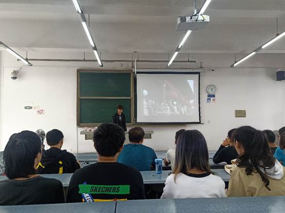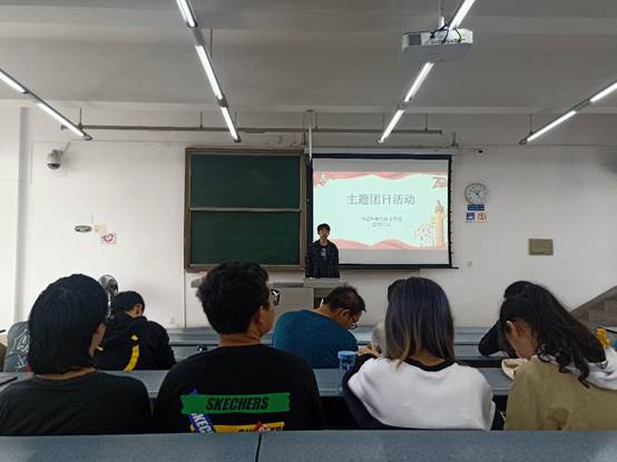 活动开始,杨昕昂同学向大家介绍了此次活动的背景。为了庆祝新中国成立70周年,感受70年来祖国的变化和发展,团支部组织全班同学观看中华人民共和国中央人民政府成立典礼复原影像。这段12分钟的影像展现了新中国成立的盛况和第一次大阅兵仪式。当看到毛主席宣布新中国成立时,全班响起了热烈的掌声。