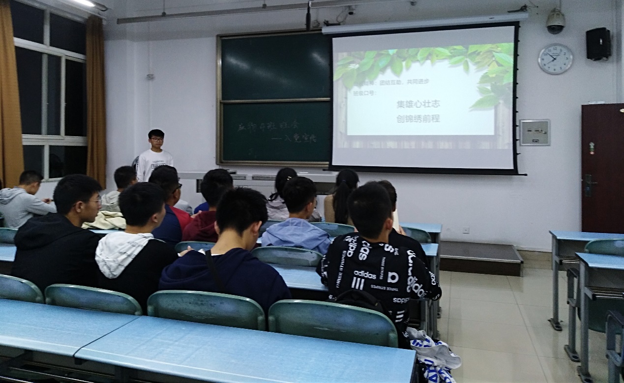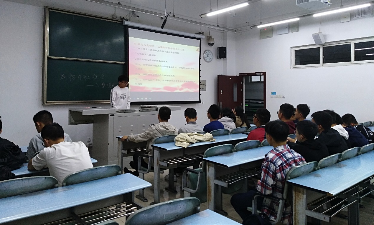 2019年10月10日晚7:30,2019级应物四班全体同学于X2325召开本学期第二次班会,此次班会的主要目的是为了明确班级精神和入党宣传,由班长周子健主讲。