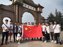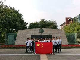 九月二十二日下午三时,团支书关欣带领二十名班级同学前往太阳成集团tyc122cc南门及竢实扬华碑,拍了许多展示班级风采的照片,大家都与国旗合了影。
