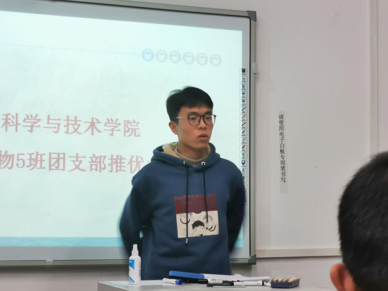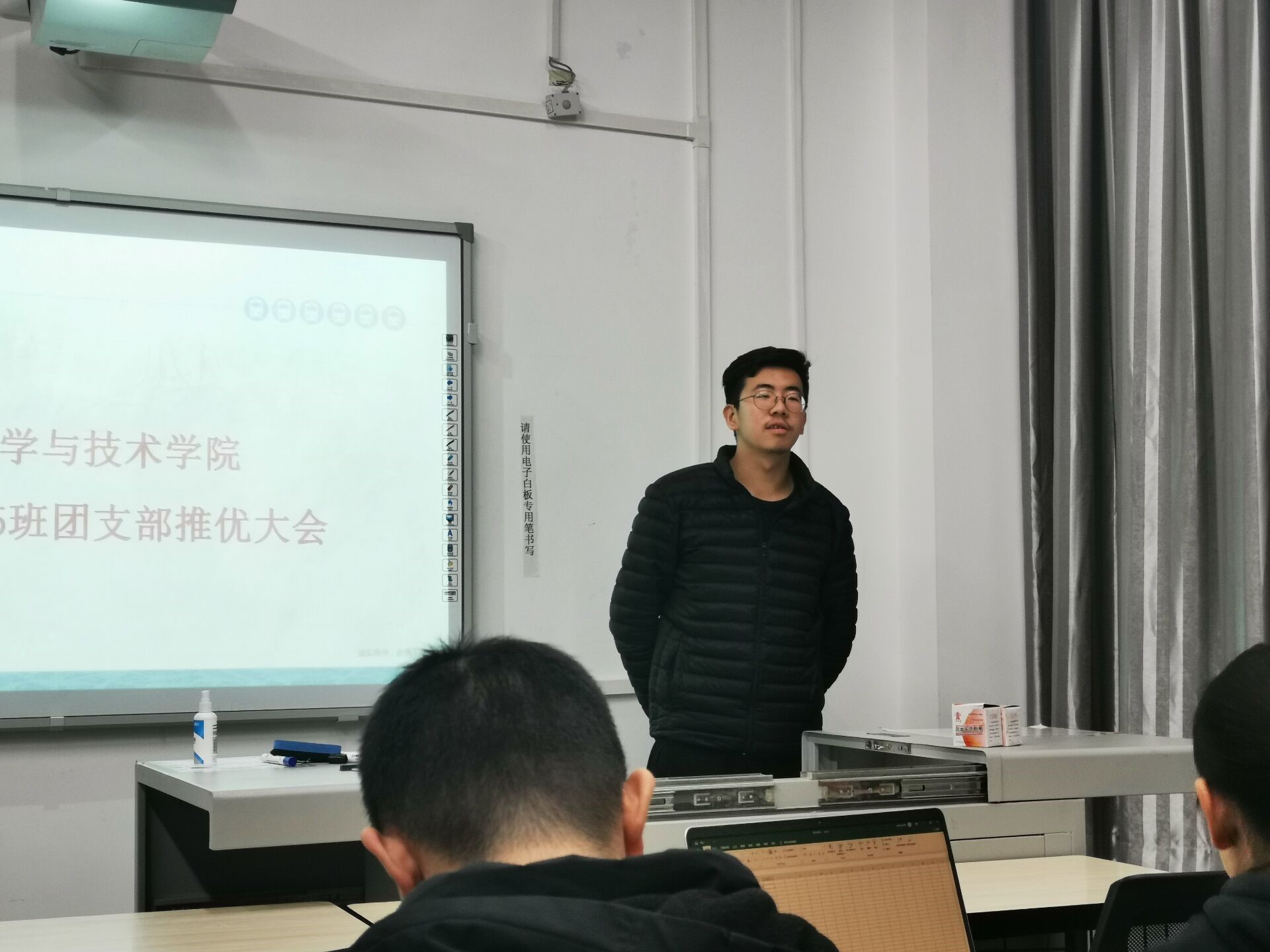 大会第二项,推荐优秀团员作为入党积极分子。我团支部支委会在支部大会召开前,已经确定了5位初步候选人。大会上,几位候选人依次上台发言、拉票,支委将匿名投票单发给各位团员。