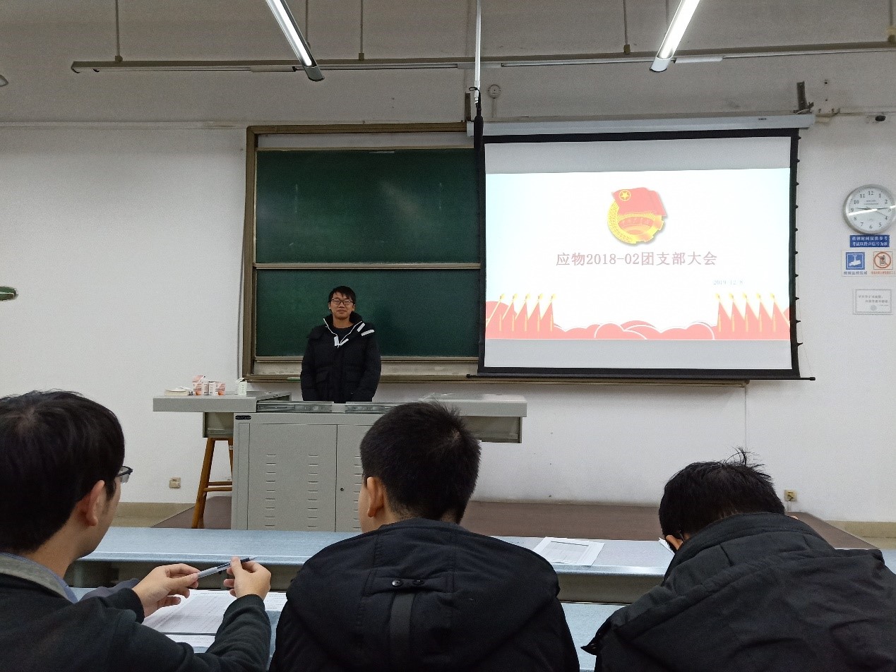 2019年12月8日晚上9点,太阳成集团tyc122cc2018级应物2班团支团支部大会在X1213教室圆满召开。应物2班全体同学参与了此次会议。