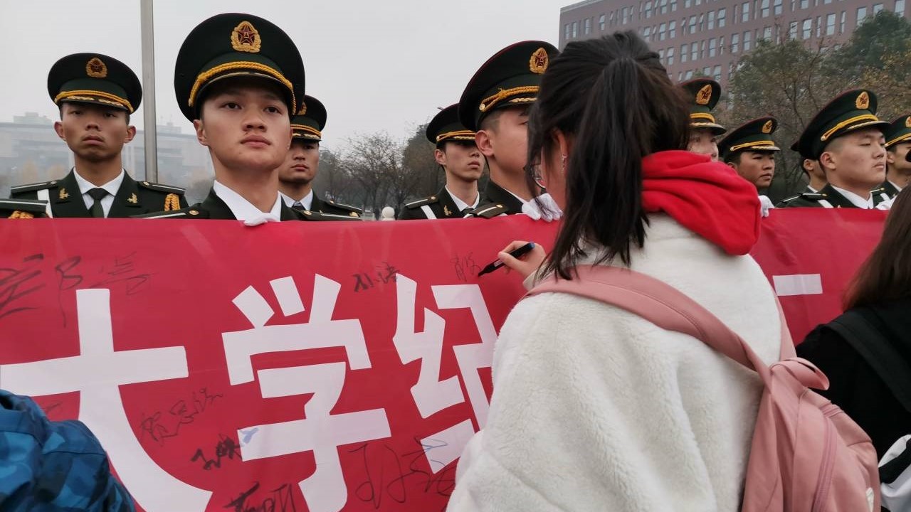 最后,应物四班全体同学于横幅前签名,完成这项仪式。