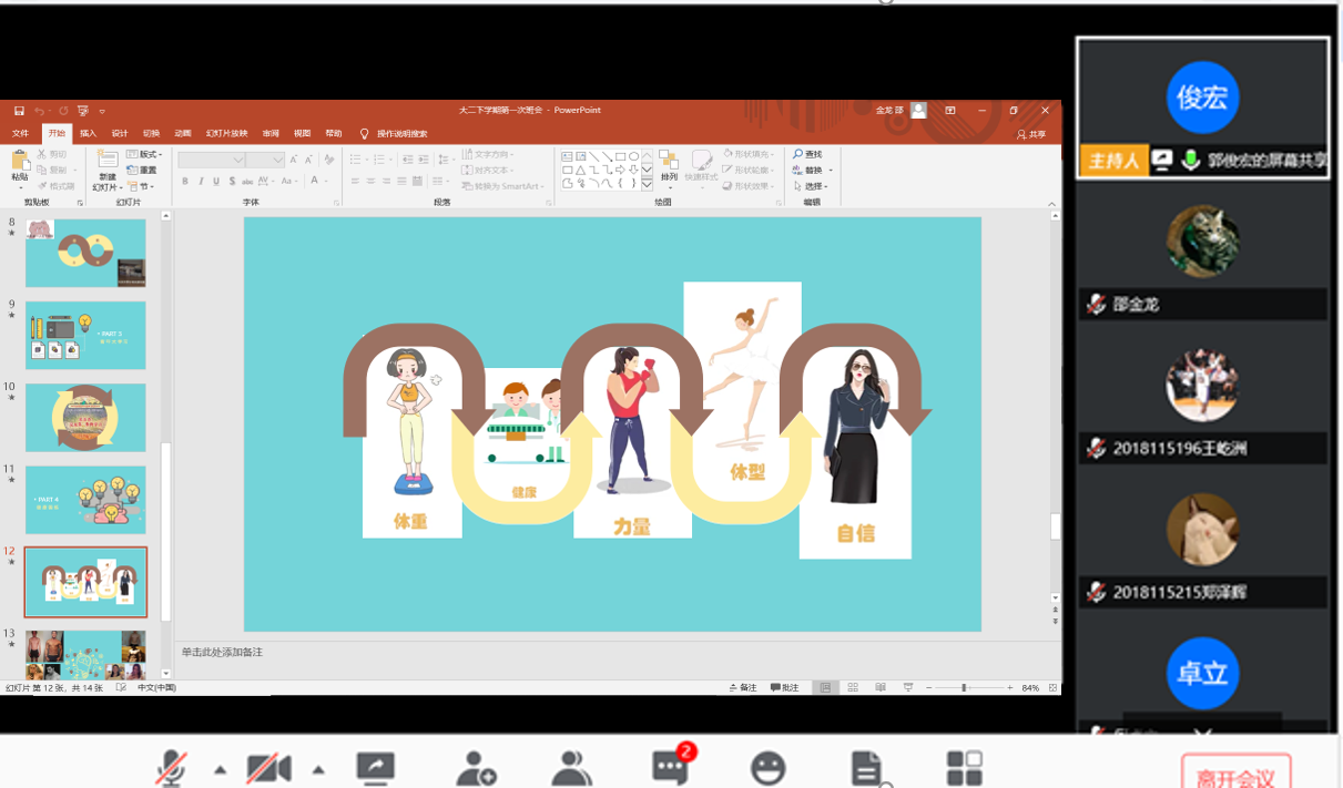 班会最后,郭俊宏同学提醒大家在疫情期间仍要注重身体健康,并分享居家锻炼的方法及经验,鼓励大家在疫情期间也要积极锻炼身体,养成良好生活和学习习惯。