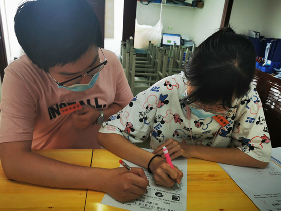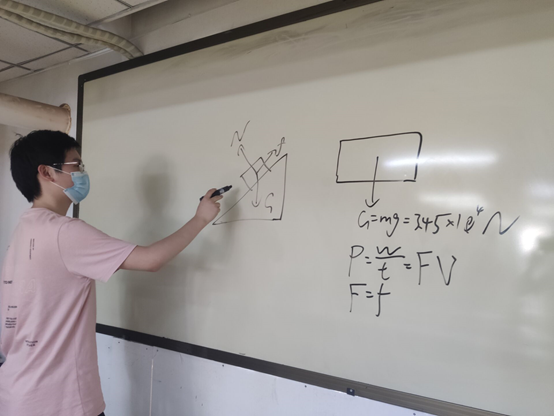 线下由邵柏畅同学在甘肃省兰州市给初中员工讲解物理和数学知识以及习题。线下时间持续了半个月,邵柏畅同学共讲解五次课。在进行三下乡前,邵柏畅提前准备好了课程材料和需要讲解的习题,在五次上课时分别带领同学们学习了力学和电路的知识。最后一堂课的考试大家都取得了优异的成绩。对于有问题的同学邵柏畅也是非常细心仔细的单独讲解。