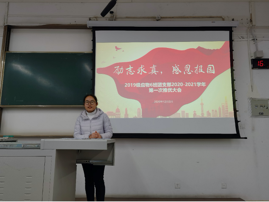 2020年12月5日15:50,2019级应物六班在X2525召开2020-2021学年第一次推优大会暨防艾主题宣讲。应物六班全体同学参加了本次班会,本次班会由班长张柏森主持。