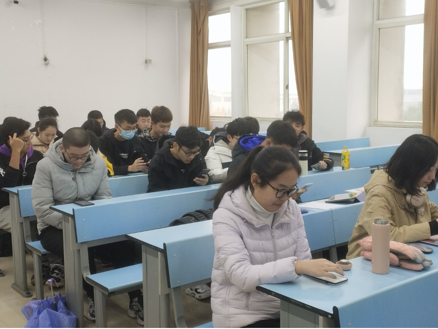 随后,班长张柏森带领大家在手机上一同学习学校制定和修订的本科生相关管理规章制度,包括教学管理与员工管理两大部分。
