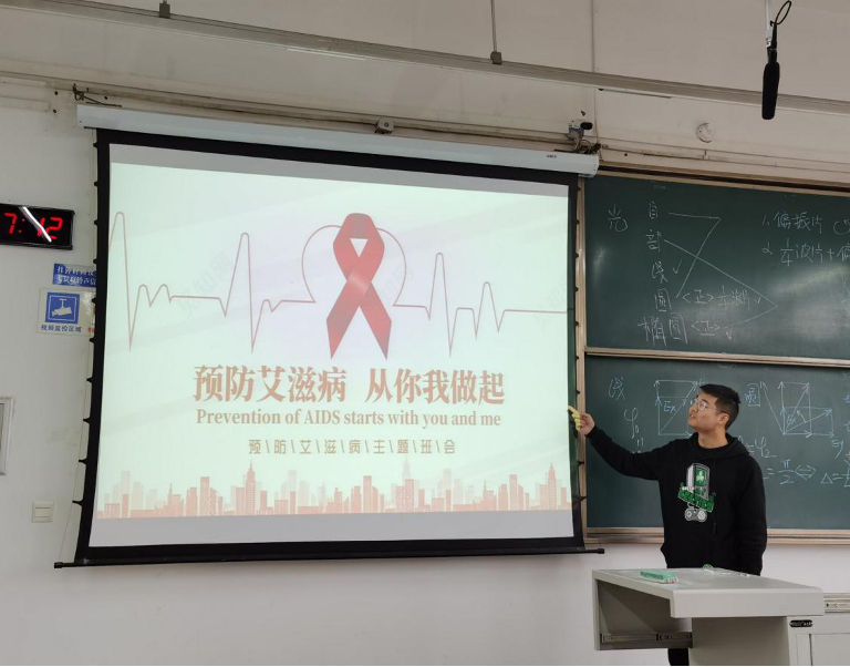 班会第二部分是防艾宣传。班长鲁彦君向我们普及了艾滋病的相关知识,强调了预防艾滋病的重要性。然后再分析了青年大学习的完成情况,另外还向我们强调了遵纪守法、保护自己的网络安全,告诫我们不要随意点开不明来源的网站,不要相信“注销校园贷”的电话等安全问题,最后向我们强调了每日健康填报,做好疫情防控的相关规定。