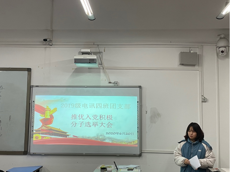 班级的入党积极分子推优大会由团支书李欢欢同学主持,本次入党积极分子的候选人有刘铝钦、施逸蕾、费骁谋、齐元彬、杨坤萍、张笑宇、全霖泰和刘耀炫共8位同学,每位候选人上台做出约1至2分钟演讲,纷纷表达了他们对中国共产党的崇敬以及希望加入中国共产党的殷切愿望。在经过同学们严谨的投票与班委认真的审核唱票后,推选6位同学为本次入党积极分子。