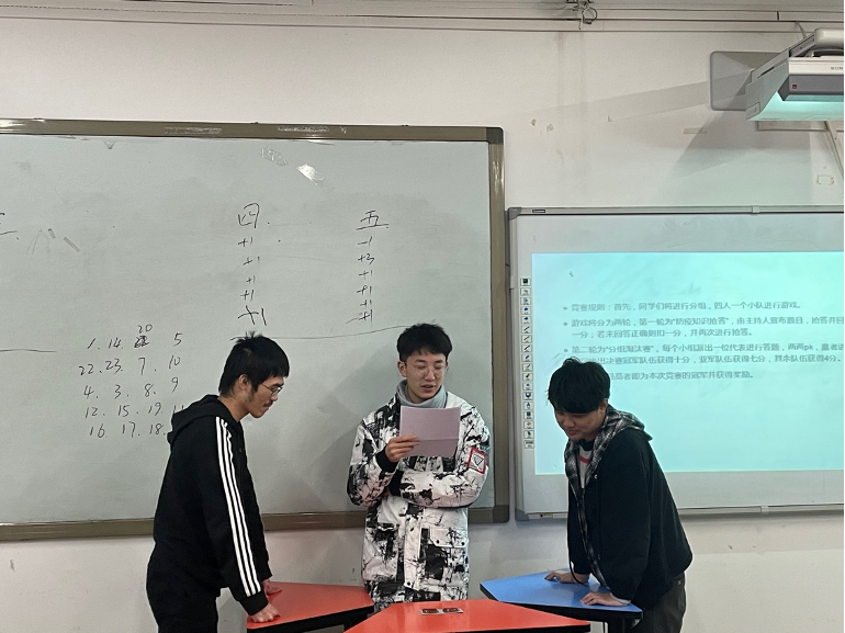 最后,由学习委员刘铝钦同学带领同学们学习防艾基本知识并展开艾滋病问答竞赛,同学们在竞答中加深了对艾滋病的了解,学会了如何预防艾滋病以及正确地对待艾滋病人。激烈的竞赛结束后,由班委成员对竞赛前三名的队伍颁发了奖品。