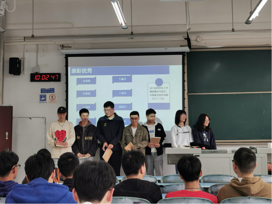 本次大会的重点在学习方面,我班的学习委员通过对上期期末的考试成绩进行统计分析,发现主要存在两方面的问题:一是全班学习成绩整体一般,欠缺高分;二是学习成绩分层明显。根据班上同学平时的学习状态来看,究其原因主要在于学习方法的不恰当和学习状态的松散;在学风上,有两方面做得不佳同学们的主动性、自觉性意识有待提升,包括学习方面的和参与活动方面。在生活方面,生活委员让同们认识到本学期的任务:一是通过严抓学风,例如加强出勤考查、营造严谨的学习氛围,为同学们争创良好的学习环境;二是通过举办有意义的活动,提升同学们的素质能力,为同学们争创更大的表现舞台。同时督促同学们对自己在上学期各方面的表现做一个系统详细的总结,然后制定一个符合自身发展的、贴切实际的新学期新任务。紧接着对于在上学期成绩明显进步的同学进行了表彰。