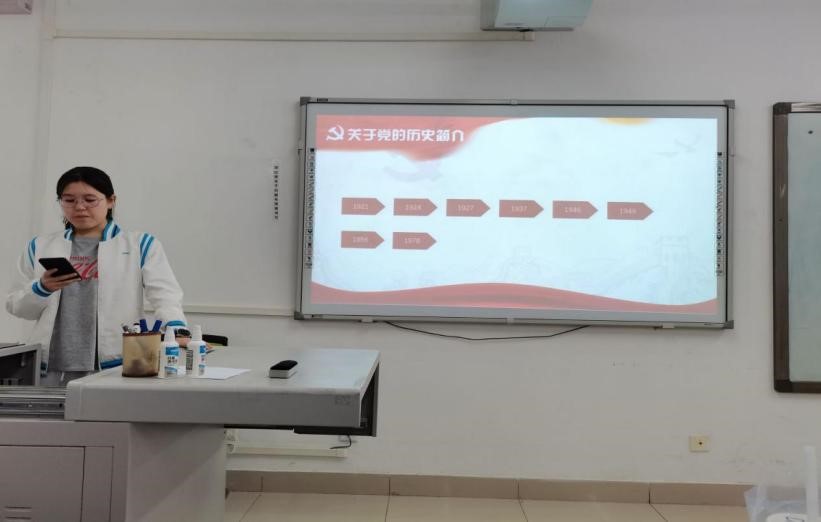 首先,刘兆媛同学为大家播放了《少年》MV,并向大家介绍了党的发展历程,让同学们了解到中国共产党从1921年成立以来,在这一百年间经历的风风雨雨。回顾梳理党的历史,那一幅幅波澜壮阔的画面深深地刻在了我们的心里。
