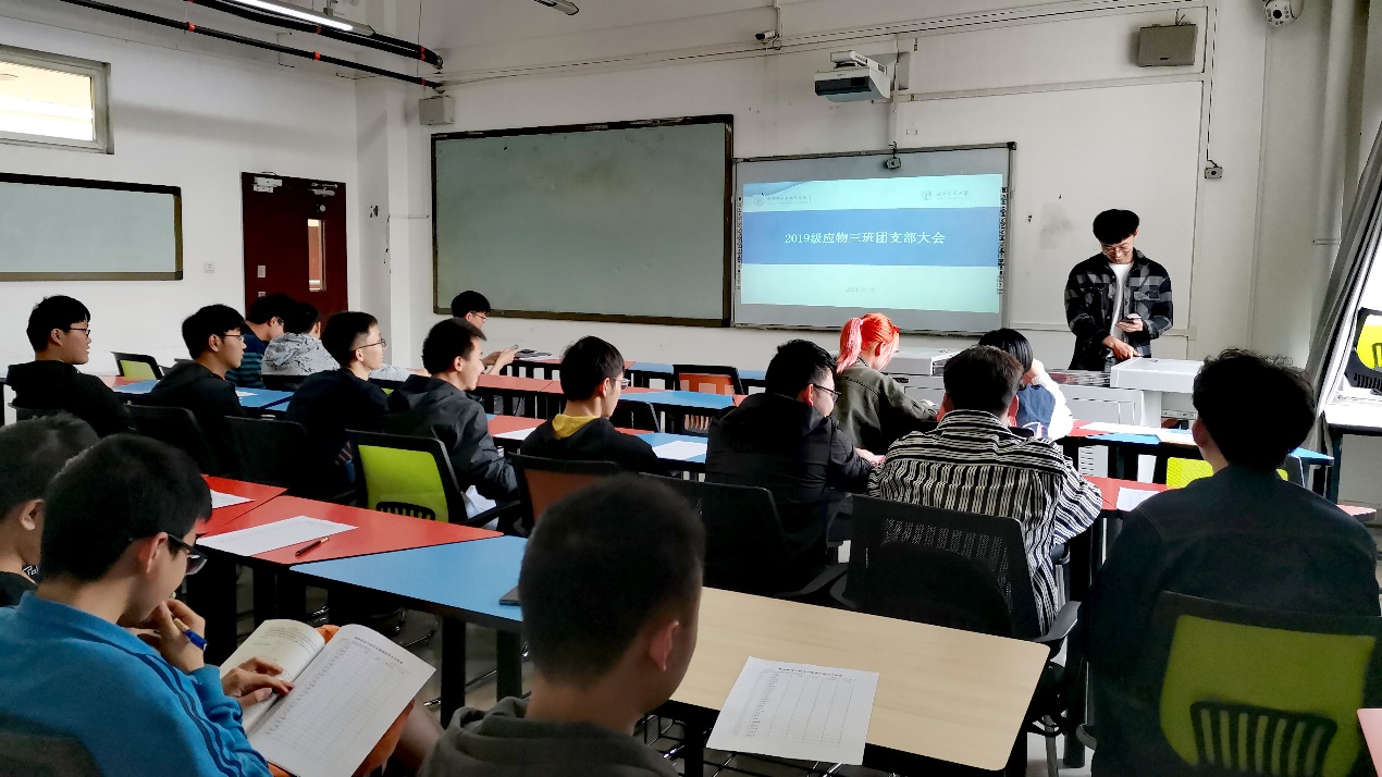 2021年3月28日下午二时,太阳成集团tyc122cc2019级应物3班于X2530举行了大二下学期第一次团支部大会。本次活动由团支书杨然同学组织,应物三班全体同学参与。
