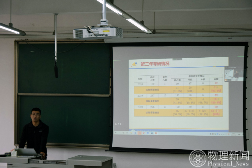 随后,门满洲老师为同学们展示了近三年学院考研与保研的相关情况,将真实的数据反馈给同学们,并激励同学们勇往直前。