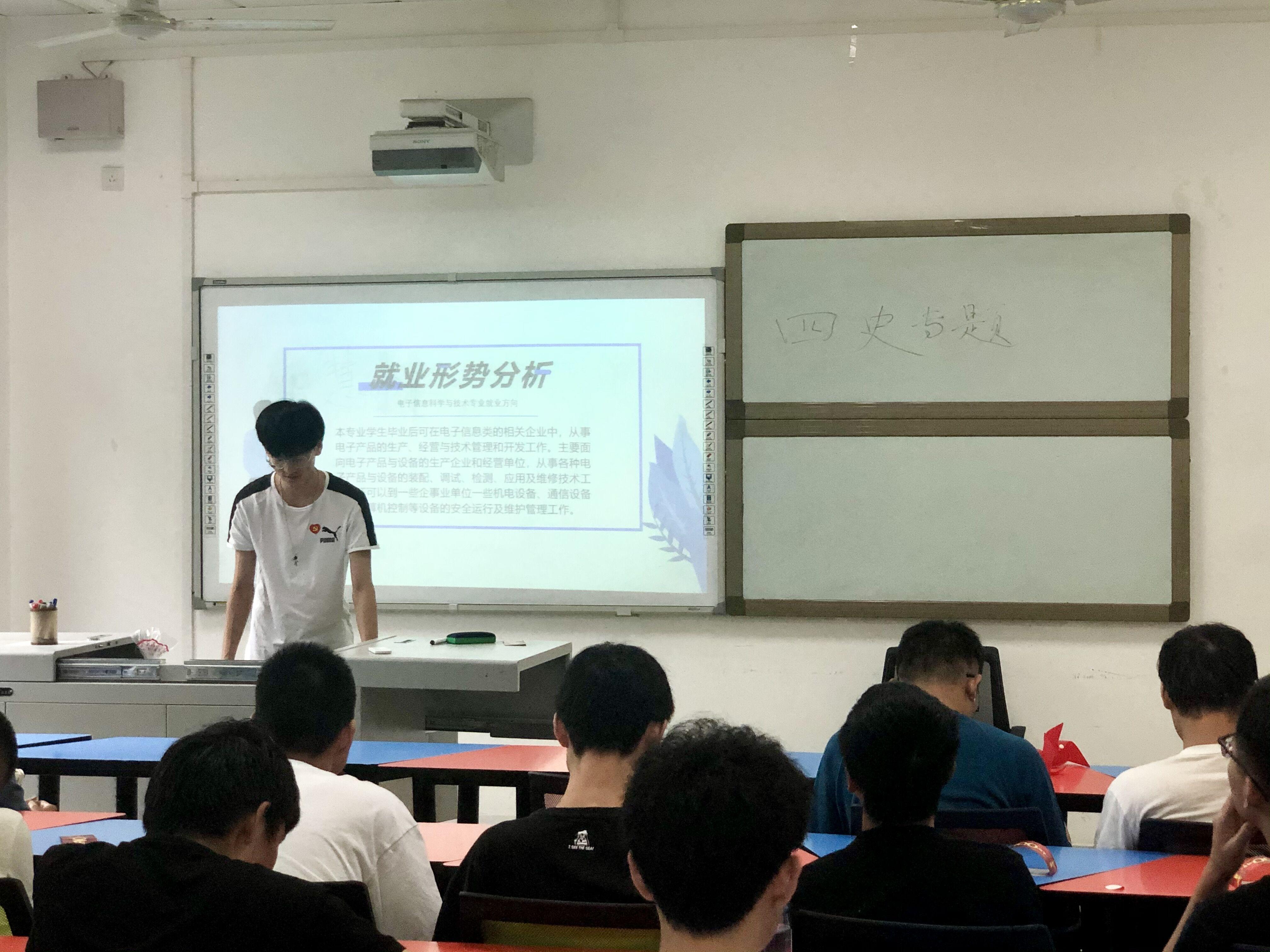 本次班会由李荣业主讲,他首先为同学们分析了本专业的就业形势与就业方向。我们可以面向电子产品与设备的生产企业和经营单位,从事各种电子产品与设备的装配、调试、检测、应用及维修技术工作,同时计算机控制等设备的安全运行及维护管理工作也是不错的选择。