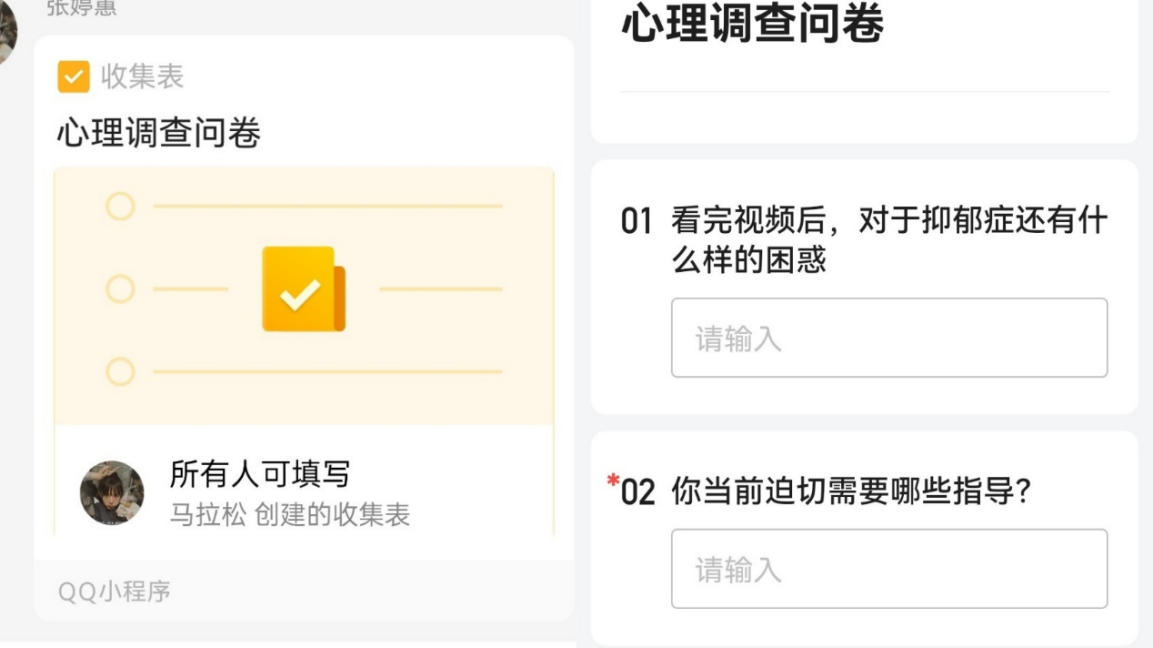 视频观看完毕后,同学们填写了心理调查问卷,心理委员藉此收集同学们对抑郁症的看法和不解,并调查了同学们当下的心理状态。