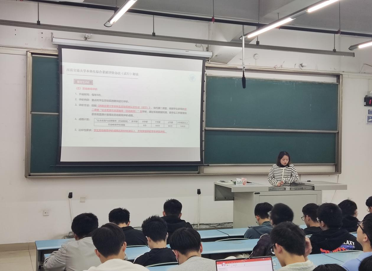 之后,夏荣林老师详细解读了《本科生综合素质评价办法(试行)》,对德育、智育、体育、美育、劳育五个方面的学时要求和具体评价方法都一一解释,强调德智体美劳五个方向全面均衡发展的重要性。