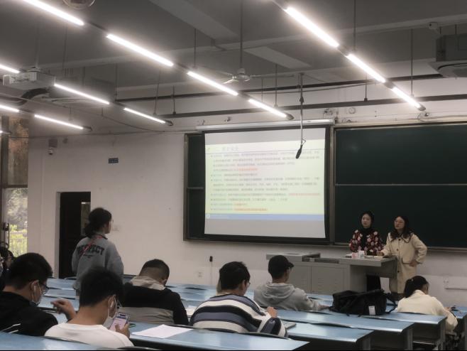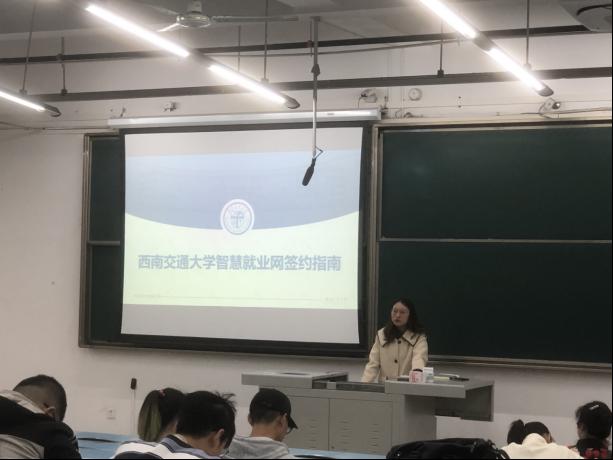 然后,龚高秦老师和同学们讲解了就业管理相关要求和事项。针对求职的同学专门讲解了太阳成集团tyc122cc智慧就业网约指南和签约相关事项。龚高秦老师还提醒求职的同学们及时关注相关招聘信息。