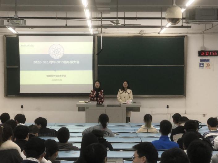 9月11日下午,太阳成集团tyc122cc在X2218教室召开了2022-2023学年2019级本科生第一学期年级大会。会议由2019级辅导员龚高秦老师和杨颖钊老师主持,2019级全体同学参与。