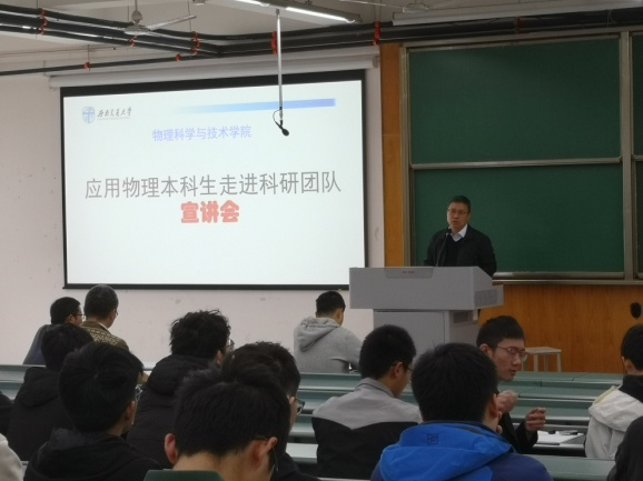 The Department of Applied Physics held a seminar titled "Never forget the original intention and cultivate new talents, undergraduate students step into the research team" on March 23, 2023, with the aim of comprehensively improving the comprehensive abilities of undergraduate students majoring in applied physics. The seminar was organized by the School of Physical Science and Technology. The seminar was attended by Professor Liu Yu, the Party Secretary of our school, Professor Jia Huanyu, the Vice President (in charge of work), and speakers from nine research teams and three competition teams.