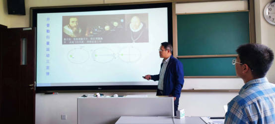 2. Dr. Cui Zhantao shared his teaching content on exploring Newton's discovery of the law of universal gravitation. Starting from the important deeds of scientists, Dr. Cui explained the hardships and difficulties of scientific exploration, and promoted the spirit of scientific exploration to students. During the teaching process, he supplemented a lot of content beyond the textbook, explained in detail the connection and origin between the law of universal gravitation and Newton's laws of mechanics, and carried out deduction and calculation step by step. From shallow to deep, other teachers gained a lot.
