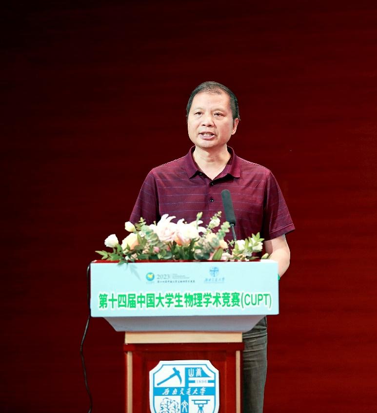 First, Professor Kang Guozheng, member of the Party Committee and Vice President of Southwest Jiaotong University, delivered a speech at the opening ceremony. In his address, he extended a warm welcome to the distinguished guests and participating teachers and students on behalf of Southwest Jiaotong University. He emphasized the university's long-standing commitment to cultivating students' practical and innovative abilities. He hoped that the participating students would showcase their talents on this important platform for innovative practice, compete in their physics expertise, carry forward the spirit of hard work, continuously improve their learning effectiveness, cultivate their solid skills, bravely shoulder the responsibilities of the times, and make concerted efforts to write a new chapter of high-level scientific and technological self-reliance. He encouraged them to let their life dreams and youthful passion shine brightly on the historical journey of the great rejuvenation of the Chinese nation.