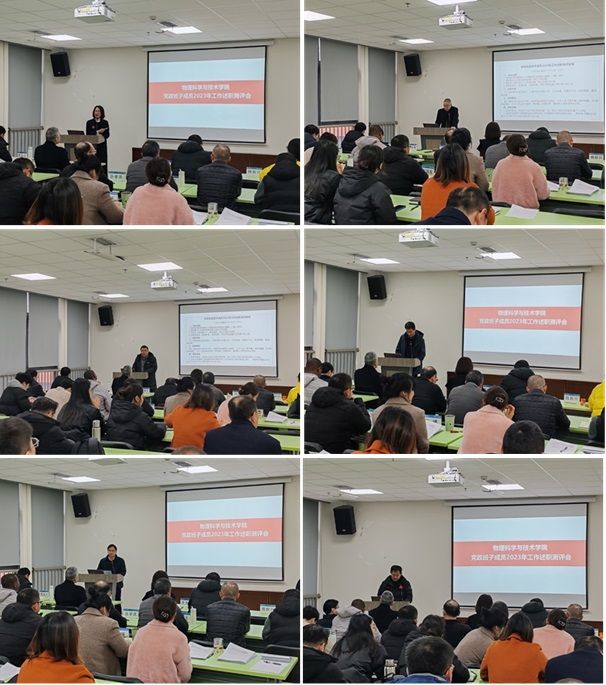 On the afternoon of December 28th, the School of Physical Science and Technology held a general meeting of all faculty and staff in X30334, and conducted the 2023 work report and evaluation of the leadership team. All members of the leadership team and all faculty and staff of the school attended the meeting. The meeting was chaired by Li Zhuohui, secretary of the party committee of the school, and Wang Wan, a member of the party committee organization department, supervised the whole process.