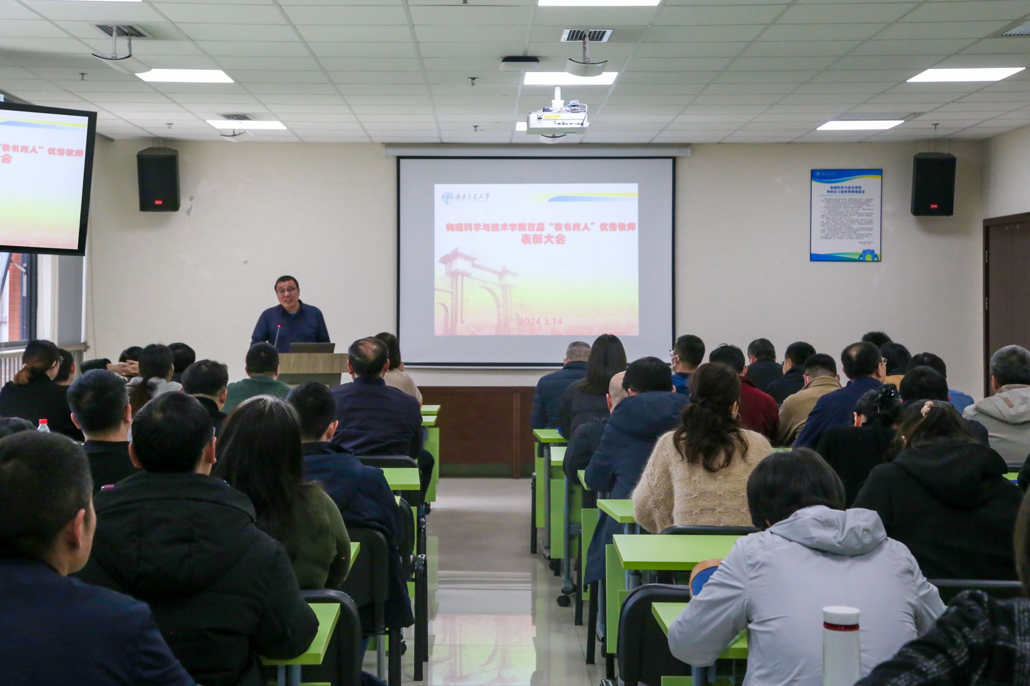 In order to thoroughly implement the spirit of the 20th National Congress of the Communist Party of China and Xi Jinping's Thought on Socialism with Chinese Characteristics for a New Era, implement the fundamental task of cultivating virtue through education, promote the ideological and political construction, ethical conduct, and professional competence improvement of teachers in the school, and encourage the continuous emergence of "Four Good" teachers, the School of Physical Science and Technology held the first "Educational Excellence" Awards Ceremony for outstanding teachers on March 14, 2024. Members of the school's party and administrative leadership team, as well as all faculty and staff, participated in the event, which was presided over by Guo Jian, Deputy Secretary of the Party Committee and Vice Dean of the school.