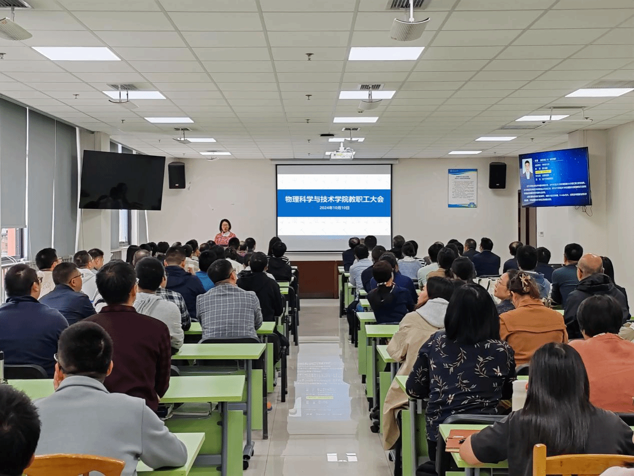 On the afternoon of October 10, the School of Physical Science and Technology convened a faculty and staff meeting in Conference Room X30334. The meeting was attended by the leadership team of the school and all faculty and staff members. It was chaired by Li Zhuohui, the Secretary of the Party Committee.