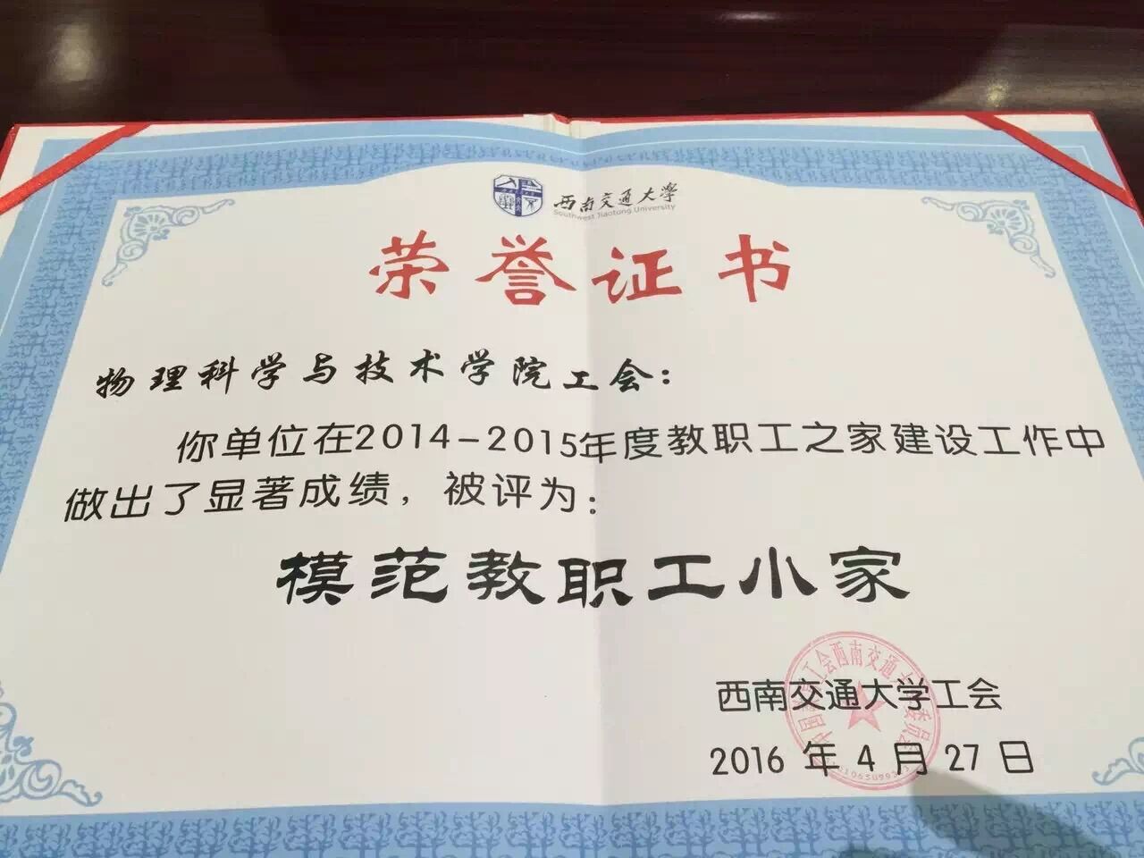太阳成集团tyc122cc工会荣获2014--2015年度“模范教职工小家”称号