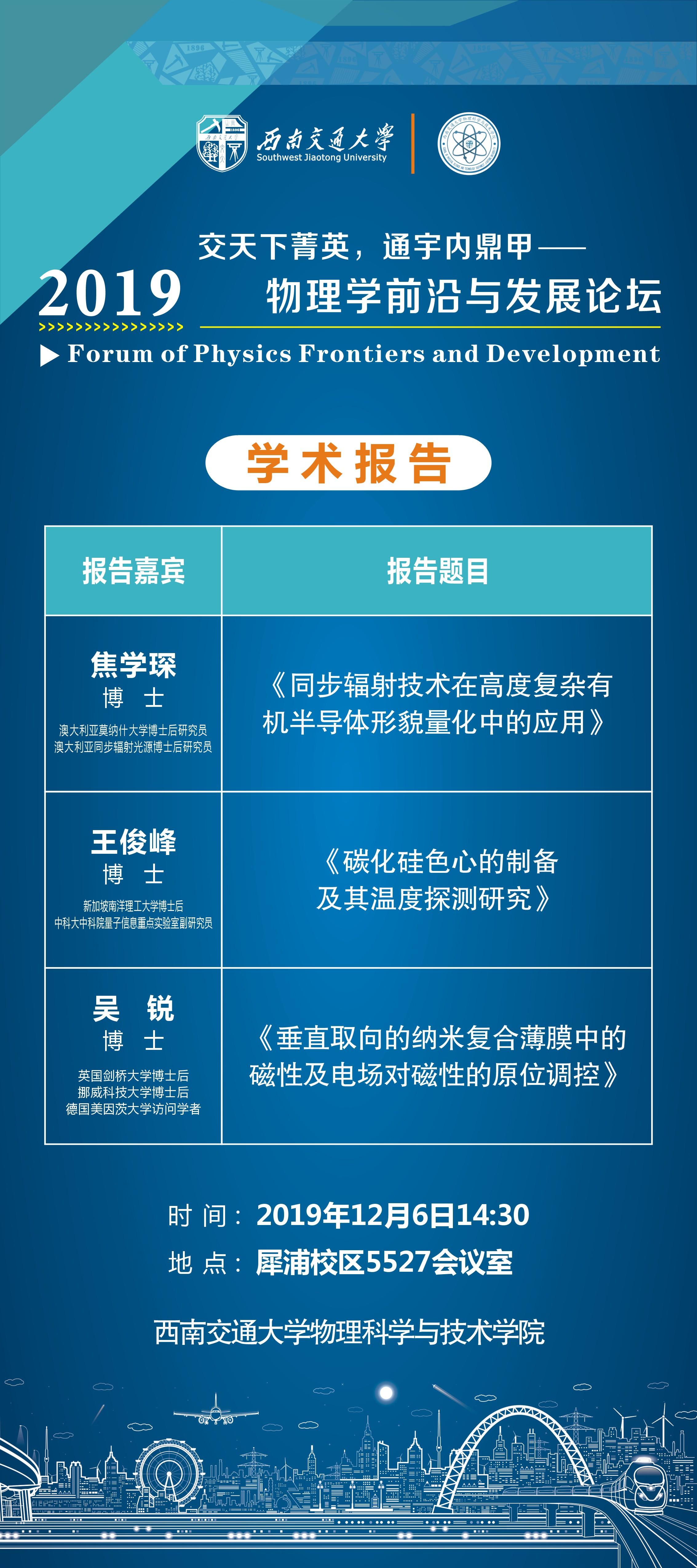 为加强物理学相关研究领域的交流与合作,特举办“物理学前沿与发展分论坛”。本次分论坛将聚焦物理学相关领域国内外热点课题的最新研究成果和进展,包括但不限于等离子体物理(聚变等离子体、脉冲功率技术及其应用、低温等离子技术等)、凝聚态物理(高压物理、团簇物理、材料物理、超导物理等)、理论物理(宇宙线物理、广义相对论与宇宙学、量子物理等)、光学、无线电物理(复杂电磁问题的数值模拟、微波传输与辐射、无线通讯与光通讯)等学科方向。旨在为海内外青年学者与优秀博士/博士后提供物理学领域前沿科技交流与人才选聘平台。