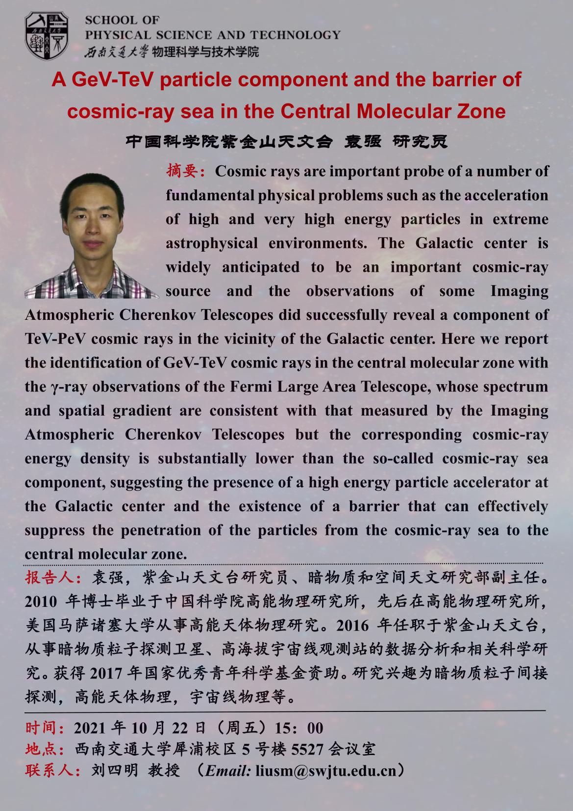 1, 报告题目: A GeV-TeV particle component and the barrier of cosmic-ray sea in the Central Molecular Zone