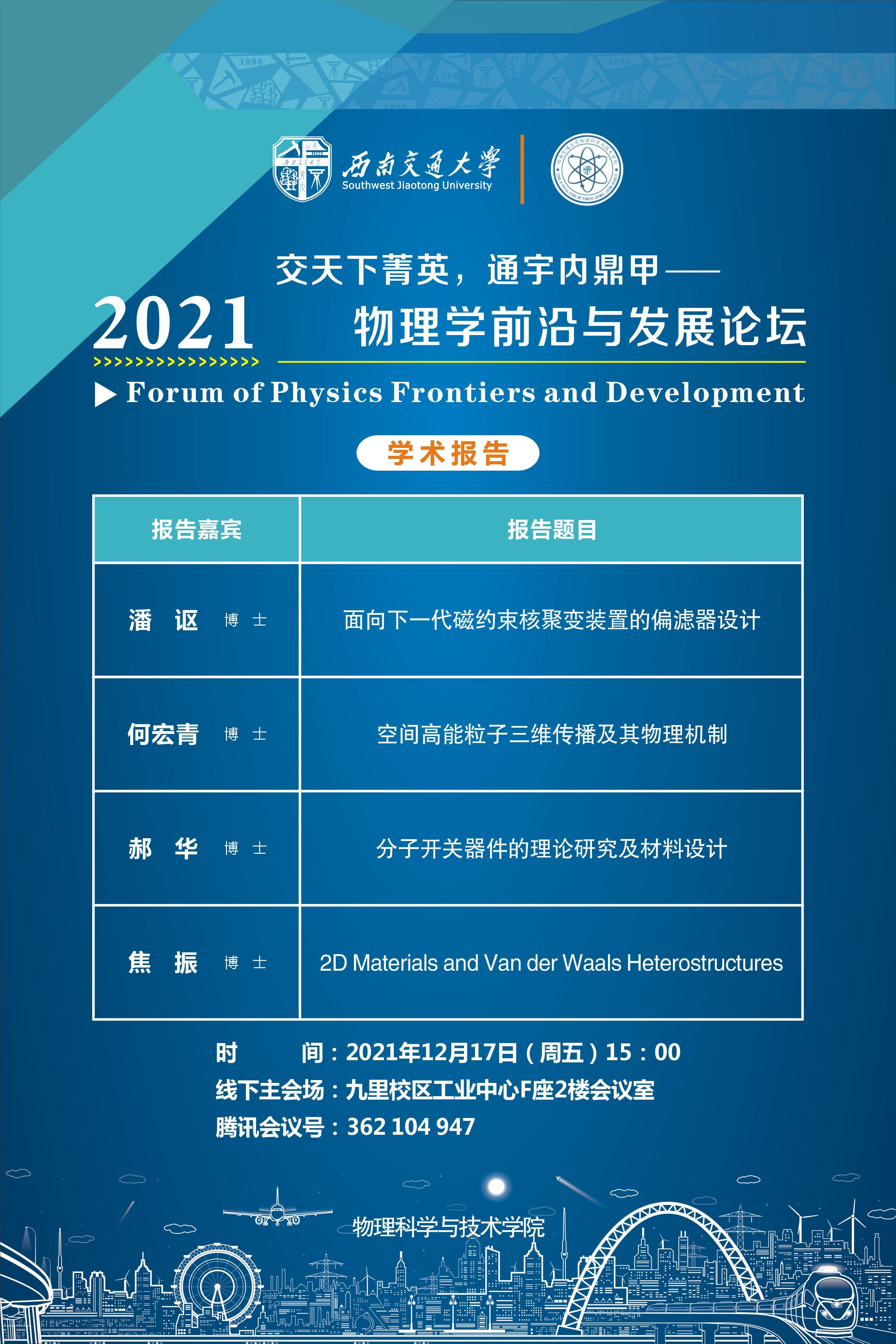 2021年“交天下菁英,通宇内鼎甲”--物理学前沿与发展论坛海报