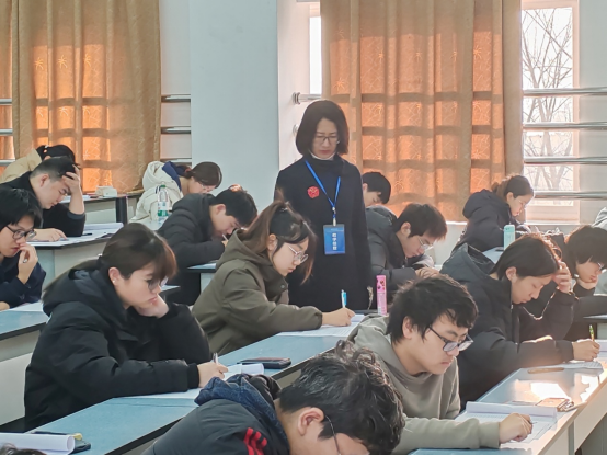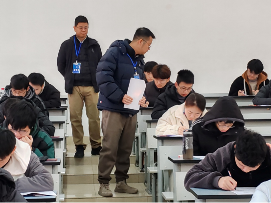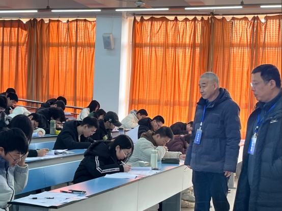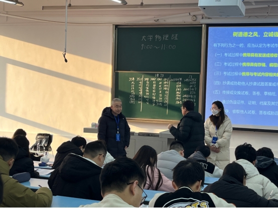 2025年1月2日,太阳成集团tyc122cc大学物理公共基础课《大学物理》(含AⅡ、BⅡ、DⅡ、GⅡ、JⅡ、MⅡ)期末考试如期举行,全校分97个考场进行,共5008名员工参加本次考试。学院党委书记李卓慧、经理贾焕玉、副书记兼副经理郭剑、副书记魏振兴、副经理倪宇翔及物理系、学院教务、学工等负责人深入考场一线,参加期末考试巡视。