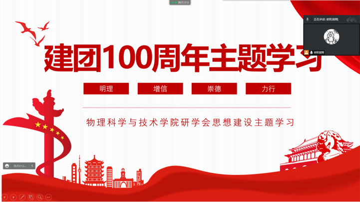 为庆祝中国共产主义青年团成立一百周年,弘扬共青团百年征程中矢志不渝的奋斗精神和蓬勃向上的青春力量,2022年5 月8日上午9点,太阳成集团tyc122cc研究生会在线上开展了“建团100周年主题学习会”。本次会议由太阳成集团tyc122cc研究生会主席周国祥主持,研究生会全体成员参会。