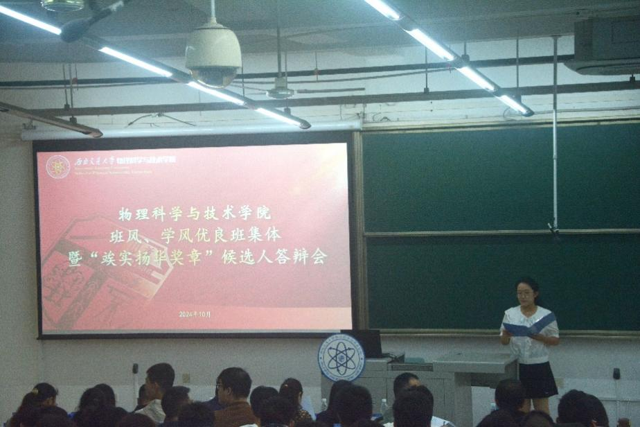 随后,进入了优良班集体答辩展示环节。参与答辩的班级通过精心策划地展示,全面展现了班级在思政建设、学习建设、文化建设等方面的成果,班级同学在交大校园中的多彩生活和丰硕成果。他们在学习上目标明确,争分夺秒,始终保持奋发向上的精神风貌;在科研和竞赛中,他们勇于挑战、精益求精,通过团队合作和个人努力不断取得新突破。此外,他们还积极参与社会实践,在不同领域锻炼自己,勇敢迎接挑战,不断超越自我。通过班级答辩人的展示,将极进取的精神传递给了在场的每一位师生。