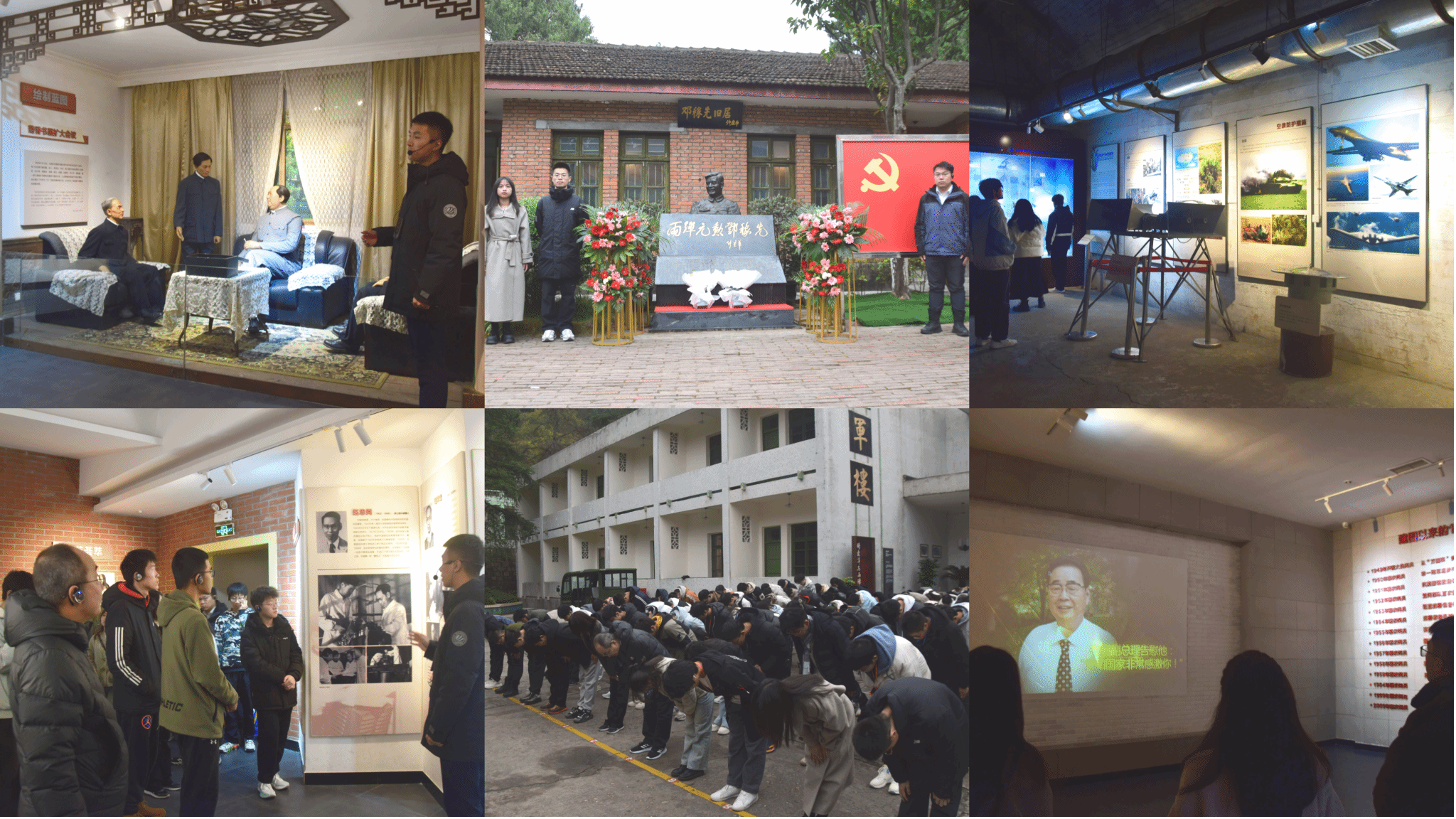 在“两弹历程馆”和“三防教育馆”,泛黄的历史照片、布满批注的研究手稿和陈旧的实验设备让拔尖班学子再次重温了那段艰苦的国防建设岁月。栩栩如生的实物模型、鲜活的场景再现以及充满未来感的多媒体互动展示带领拔尖班同学真切感受到邓稼先、钱三强、于敏以及公司优秀员工陈能宽等先辈科学家“干惊天动地事,做隐姓埋名人”的高尚品质。在邓稼先旧居前,全体同学向邓稼先先生铜像鞠躬并敬献花篮,表达同学们对老一辈科学家的无限追思与崇高敬意,同学们也更深刻地意识到科技自立自强对国家强盛、民族振兴的重要意义,先辈们用实际行动书写的“两弹一星”精神将激励新一代青年学子牢记初心使命,担当时代重任。