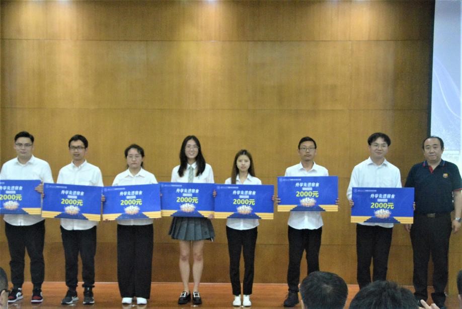 在公司党委副书记魏振兴宣读关于表彰2022届本科生升学先进集体、先进个人的决定后,人才招聘处处长陈岩峰、党委员工工作部副部长邢晓鹏、学院副经理李金龙分别为升学先进班集体、升学先进宿舍、优秀班导师颁发奖励。在激昂的音乐声中,获奖代表激动地与颁奖嘉宾握手留念,观众席中不时爆发出阵阵掌声,这既是受表彰人员分享给大家的幸福喜悦,更是对学院师生长期努力奋斗的最好回报。