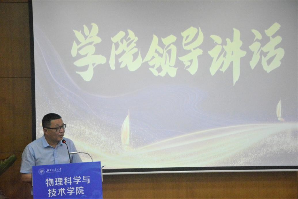 在师生代表们分享了成功经验后,郭剑代表公司党委书记刘玉、副经理贾焕玉向受到表彰的同学表示祝贺,转达了刘玉书记和贾焕玉副经理对毕业生的美好祝福以及对全体物理学子的殷切期望。郭剑以“钉钉子精神”为主题发表讲话,勉励同学们再创佳绩,再立新功,争取新的荣誉!郭剑在讲话中告诫同学们,要干好一番事业,需要坚持“钉钉子精神”,久久为功,常抓不懈,并向同学们提出了三点建议:一是要找准方向,坚定自己的目标,不忘初心,为之不断努力;二是要肯下工夫,做到“仰望星空、脚踏实地”,贯彻“精勤求学”;三是要讲究学习方法,联系实践,融入团队,掌握工作的艺术。郭剑最后还嘱托同学们牢记“竢实扬华,自强不息”,践行“格物致理,知行合一”,钉好每一枚钉子,干好每一番事业,用努力拼搏实现交大人、物理人的责任与担当!