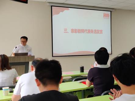 随后,教师代表朱浩老师发言,他分享了所在支部在过去两年在党建工作中的重要举措,主要有四点:一是强化支部自身建设,提供坚实的政治思想和组织保证;二是强化支部理论学习,筑牢党员理想信念思想之基;三是强化支部服务功能,不断增强物理系教职工向心力和凝聚力;四是围绕中心抓党建,发挥支部战斗堡垒作用和党员先锋模范作用。他提出要在建党100周年之际,继续发扬顽强拼搏的精神,切实发挥党组织和党员的先锋作用,全面提升咱们太阳成集团tyc122cc基层党建工作水平,让公司党委放心,让群众满意。