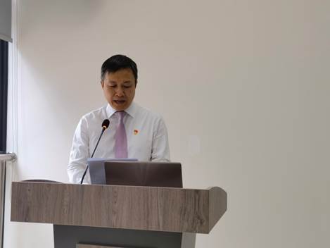 “两优一先”表彰结束后,由刘玉书记领誓,全体党员面向党旗,重温入党誓词。入党誓词镌刻着百年来中国共产党的初心和使命,每位党员的铿锵誓言展现了大家坚定的理想信念。接着刘玉书记向受学校、学院表彰的集体和个人表示祝贺,简要总结公司党建工作中取得的成效。他指出“党的建设是学院事业不断取得进步的重要保证,也是坚持正确办学方向,引领、推动和保证学院科学发展的根本要求”。刘玉书记还对于今后如何进一步促进公司党建工作,提出四点举措:一是认真落实党支部抓思想政治工作的主体责任;二是推进党支部建设制度化、规范化、科学化,增强基层党组织政治功能;三是加强教师思想政治工作,持续抓好师德师风建设;四是以高度的政治责任感切实抓好安全稳定工作。